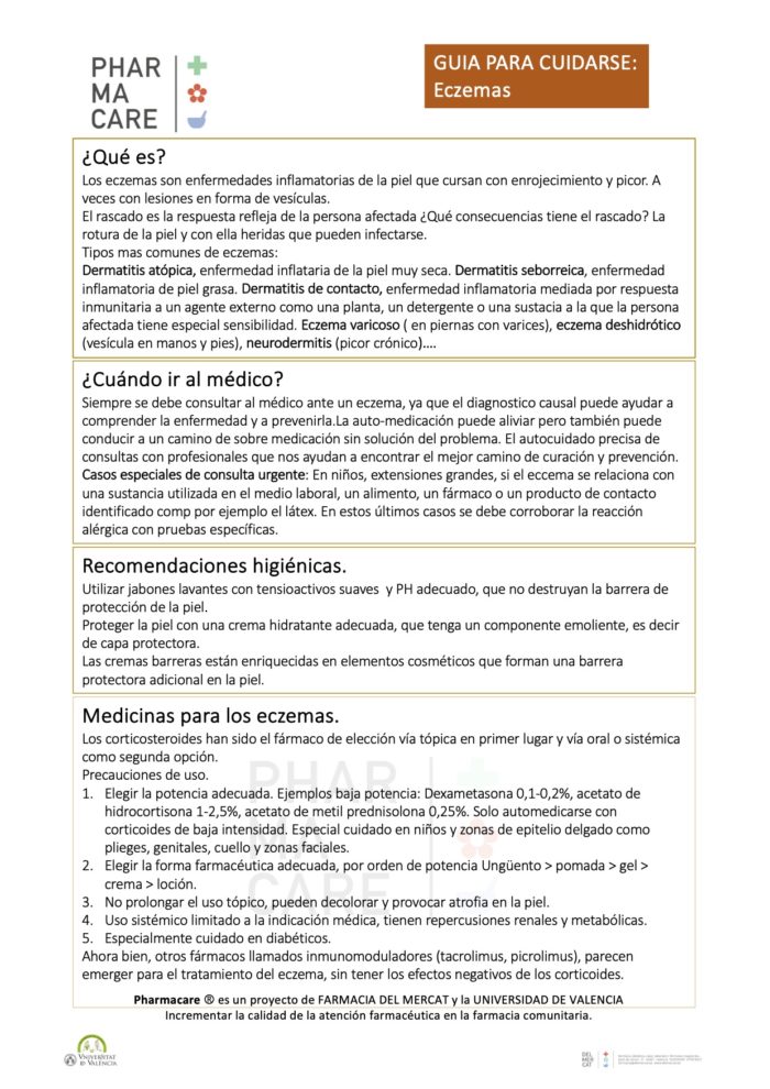 PHARMACARE GUIA DE AUTOCUIDADO. Eczemas.
