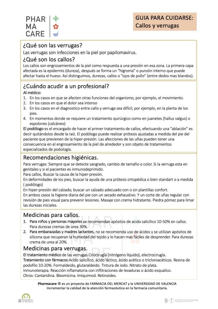 PHARMACARE GUIA DE AUTOCUIDADO. Callos y verrugas.