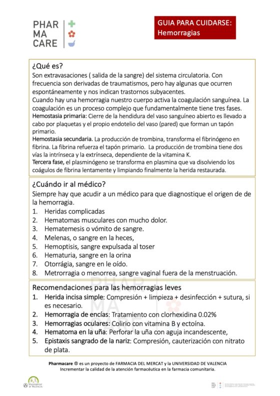 PHARMACARE GUIA DE AUTOCUIDADO. Hemorragias.